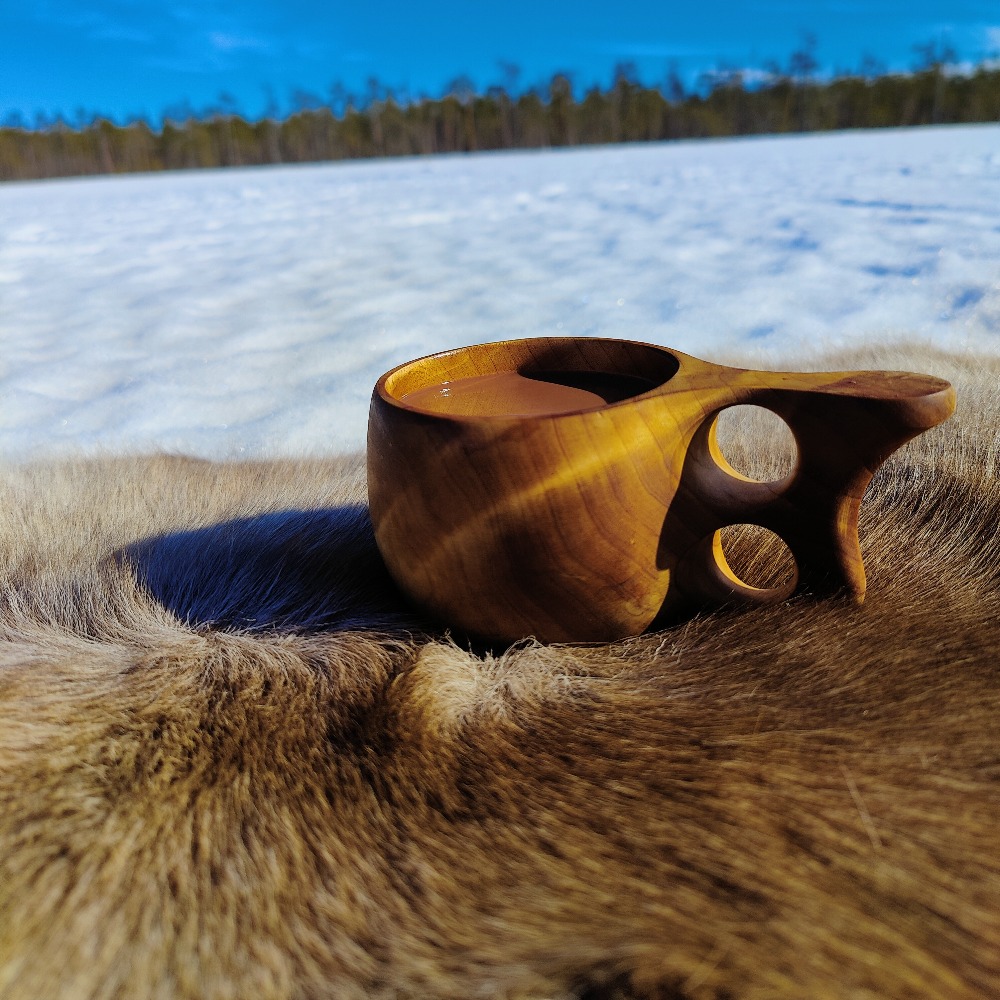 Kuksa on perinteinen Lappilainen kuppi, joka on valmistettu koivunpahkasta.