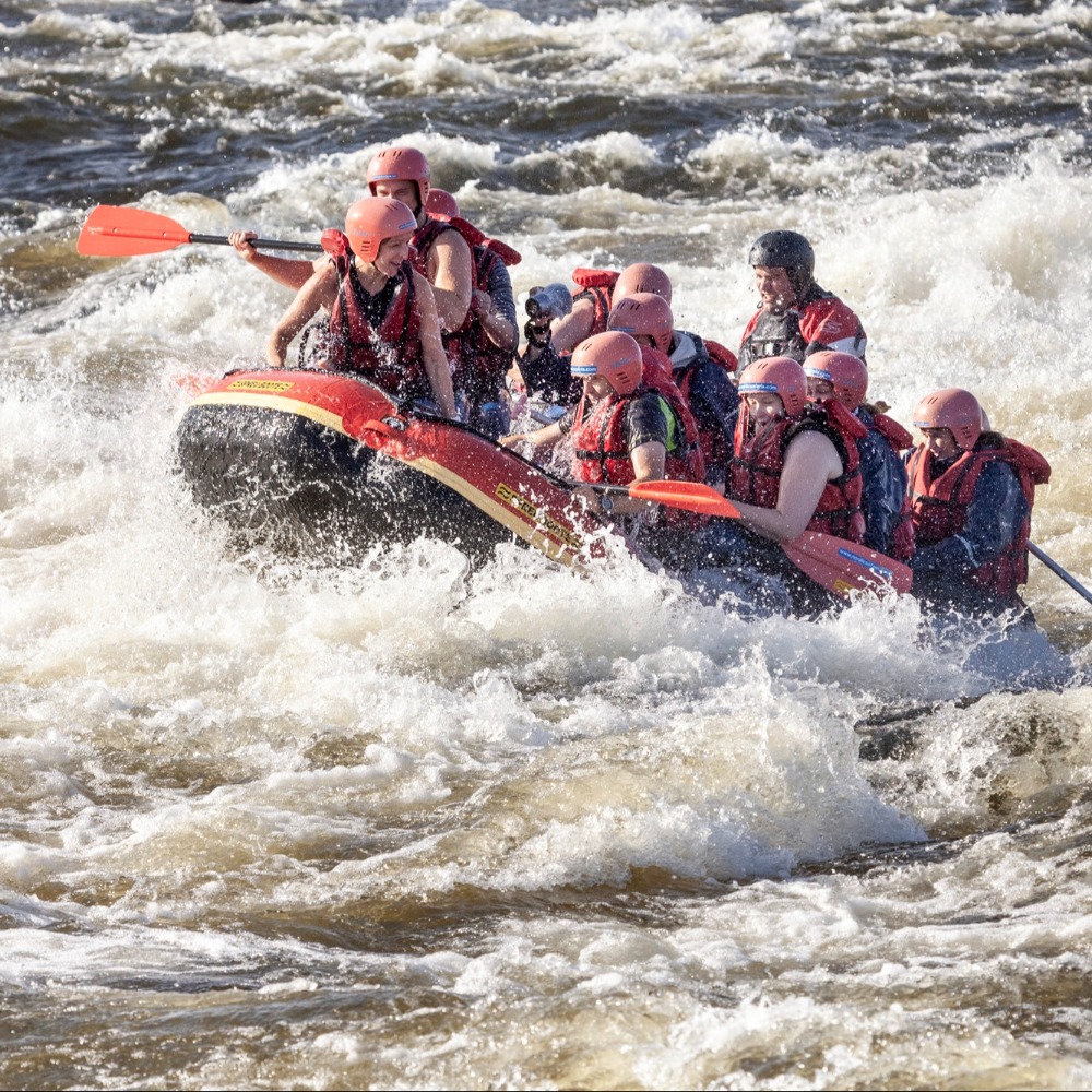 Kukkolankoskenlasku kumiveneellä - ohjelma sisältää kaksi laskukertaa. Ensilasku mennään nopeinta reittiä ja - toisessa laskussa suoritetaan suhteellisen vaativa tehtävärata.